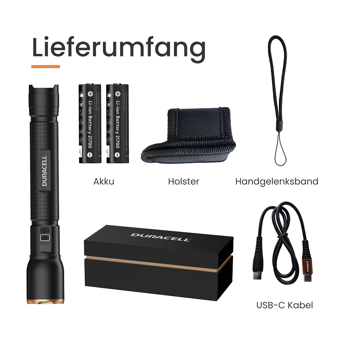 Die Duracell Power Focus-Funktion ermöglicht eine präzise Anpassung des Lichtkegels für Nah- und Fernbeleuchtung. Sie maximiert die Lichtausbeute, reduziert Streulicht und verlängert dank energieeffizientem Weitwinkelmodus die Batterielaufzeit.