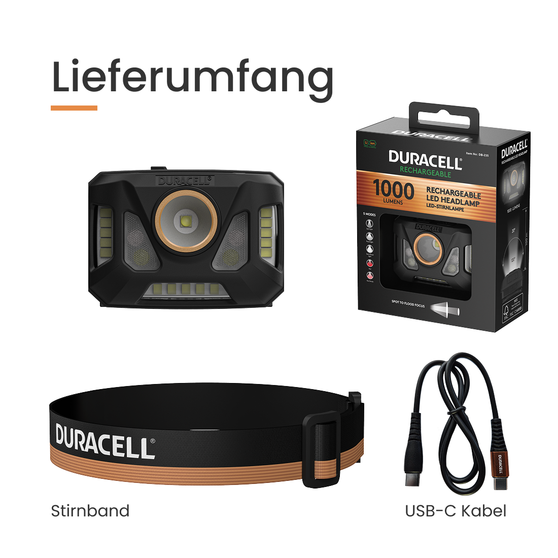 Die Duracell Stirnlampen bestehen aus hochwertigem Polycarbonat (PC), das sie besonders leicht und robust macht. Ihr flaches, ergonomisches Design sorgt für hohen Tragekomfort und optimale Funktionalität in jeder Anwendung.