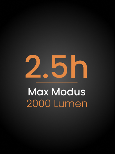 Die DH2000R verfügt über ein Dual-Switch-System, das eine präzise Steuerung von Helligkeit und Lichtmodus ermöglicht. Mit getrennten Tasten für Ein/Aus und Moduswahl kannst du blitzschnell auf unterschiedliche Lichtverhältnisse reagieren.