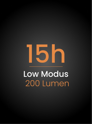 The DF2500R delivers up to 2500 lumens and provides extremely powerful illumination – ideal for professional use or outdoor activities in the dark. The three brightness levels (2500 lm, 1000 lm, 200 lm) allow for individual adjustment of the light output.
