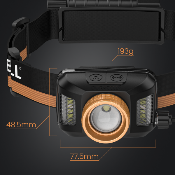 Duracell headlamps are made of high-quality polycarbonate (PC), making them particularly lightweight and robust . Their flat, ergonomic design ensures high wearing comfort and optimal functionality in every application.