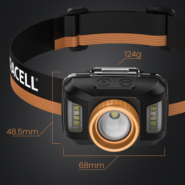 Duracell headlamps are made of high-quality polycarbonate (PC), making them particularly lightweight and robust . Their flat, ergonomic design ensures high wearing comfort and optimal functionality in every application.