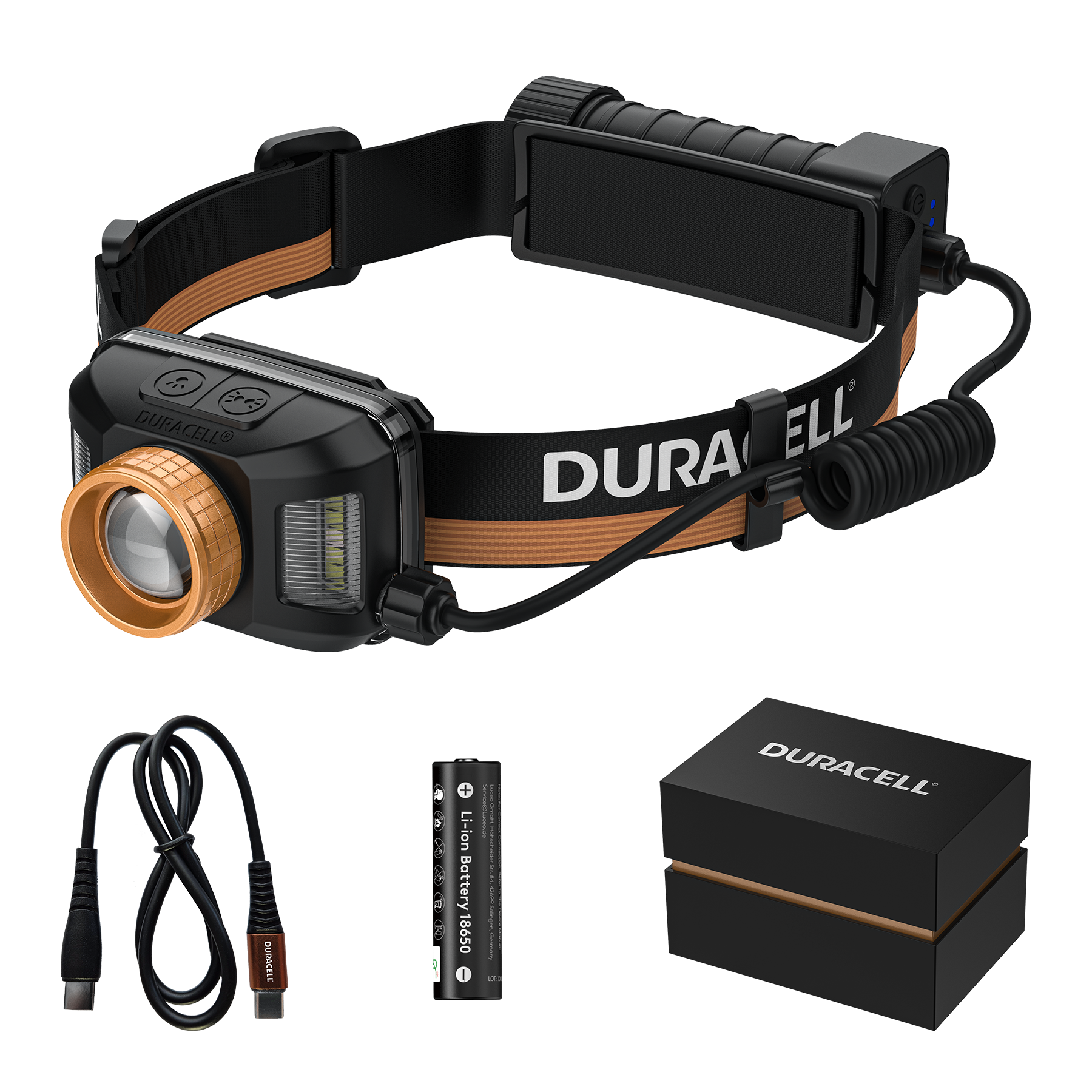 Duracell headlamps are made of high-quality polycarbonate (PC), making them particularly lightweight and robust . Their flat, ergonomic design ensures high wearing comfort and optimal functionality in every application.